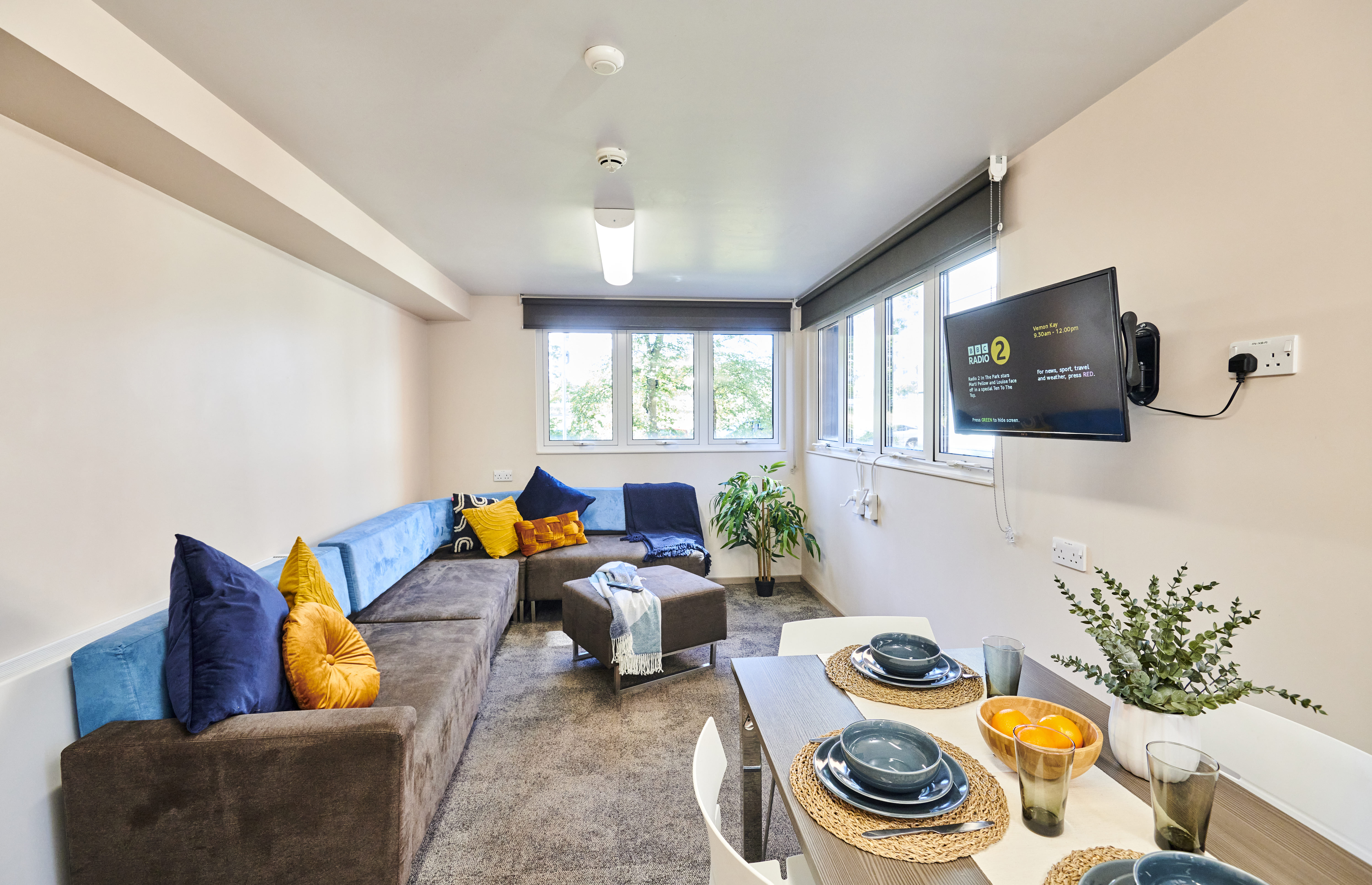 Университет предлагает размещение в резиденциях рядом с кампусом и в пределах города Ньюкасл-апон-Тайн. Жилье рассчитано более чем на 6 000 студентов, всего доступно около 10 резиденций. Основной формат — одноместные комнаты с общей или собственной ванной комнатой. В распоряжении студентов общие кухни, зоны отдыха и учебные пространства.